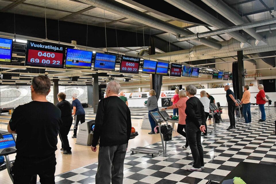 Eläkeläishinta on 20 €/rata. Rataa voi keilata yksin tai 2-3 hlöä yhdessä.